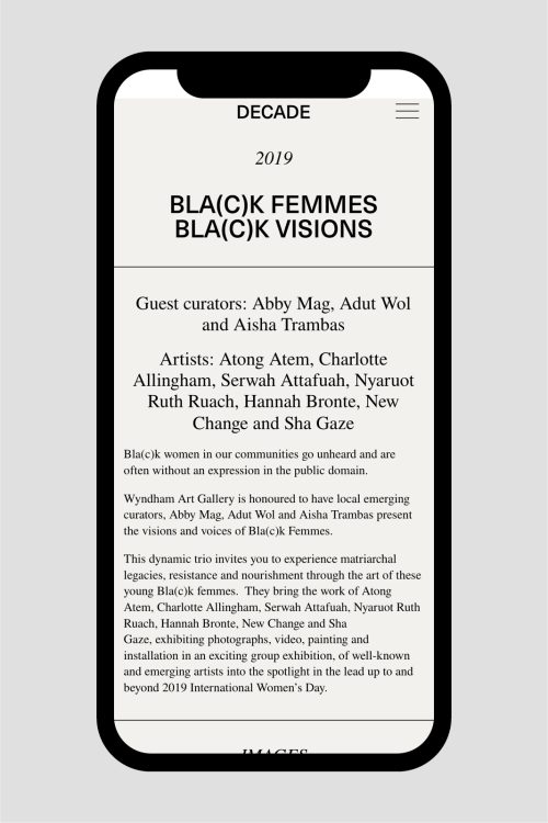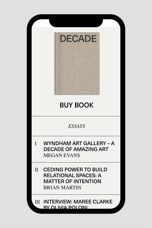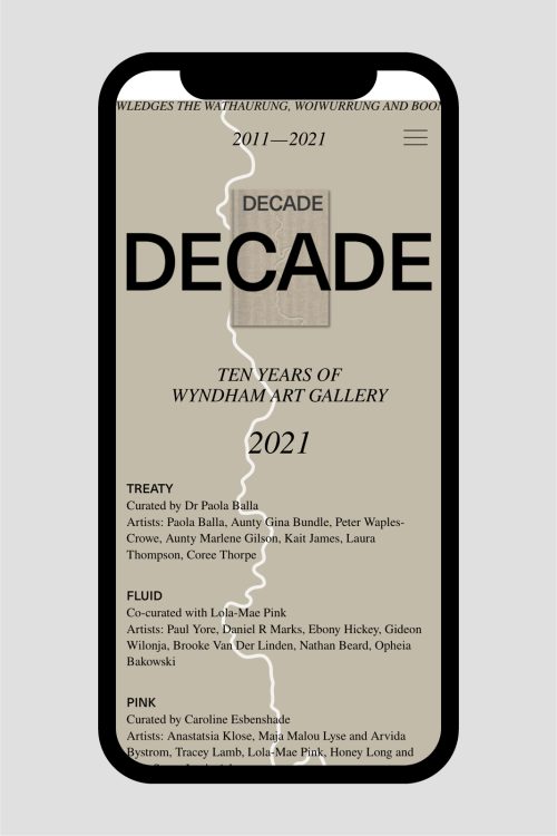 Decade: 2011-2021 is an in-depth look at the first ten years of unexpected exhibition programming at the Wyndham Art Gallery. Along with designinging the publication, F+N also designed and developed this website to document the project and promote and help sell the book. The project was comissioned by the City of Wyndham.